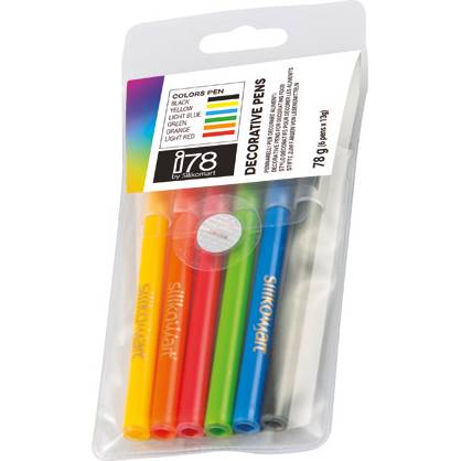 Fixy vhodné pro dekoraci potahových hmot. Barvy: červená, žlutá, zelená, modrá, fialová, růžová.