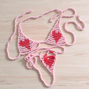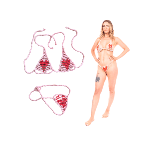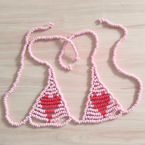 Set podprsenky a kalhotek z lipo bonbónů. Kalhotky i podprsenka jsou vyrobeny z lipo bonbonů, které jsou navlečené na elastické gumičce.