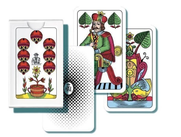Klasická karetní hra. 32 listů, jednohlavé. V papírové krabičce.