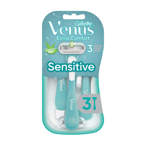 Gillette Venus Sensitive dámské pohotové holítko poskytuje díky 3 břitům s potahem a výkyvné oblé hlavici dokonalé a pohodlné oholení i na hůře dostupných místech. Hlavice má zvlhčující pásek obsahující rostlinné oleje, které zajišťují šetrné oholení.