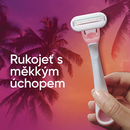 Dámská jednorázová holítka Venus Smooth Miami byla vytvořena speciálně pro potřeby ženského těla. Díky 3 ostrým břitům a výkyvné hlavici se dokonale přizpůsobují křivkám těla a umožňují hladké, rychlé a komfortní oholení. Ergonomická rukojeť zajišťuje pohodlnou manipulaci i při holení v hůře dostupných místech.