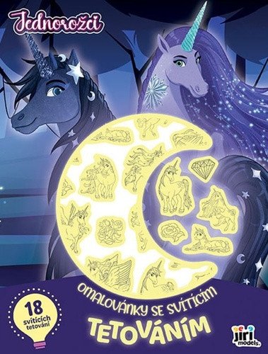 Omalovánky obsahují 16 barevných stran s obrázky k vybarvení a list originálních tetovaček, které ve tmě svítí.