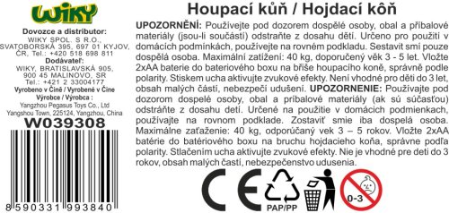 Jednorožec houpací s efekty. Růžová verze. Velikost 74x28x65 cm. Vydává zvukové efekty. Aktivace tlačítkem v uchu. 2xAA baterie nejsou součástí.