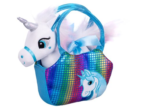 Jednorožec plyšový 22 cm s kabelkou 20x15 cm - mix barev (modrá, růžová, zelená)
