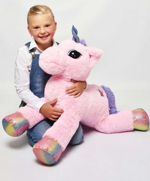 Plyšový jednorožec 85 cm velký z kvalitní a hebké plyše.