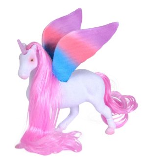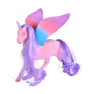 Figurka jednorožce s křídly a dlouhou hřívou. 2 druhy. Velikost 11 cm.