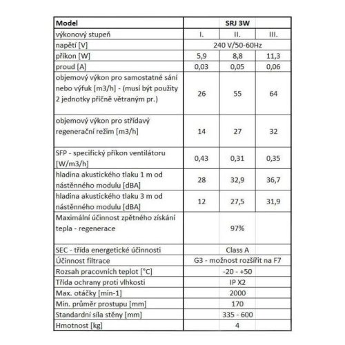 POUŽITÍ:Lokální rekuperační jednotka SRJ 3W zaručuje moderní způsob větrání, který umožňuje přivádět čerstvý vzduch do interiéru bez úniku tepla.