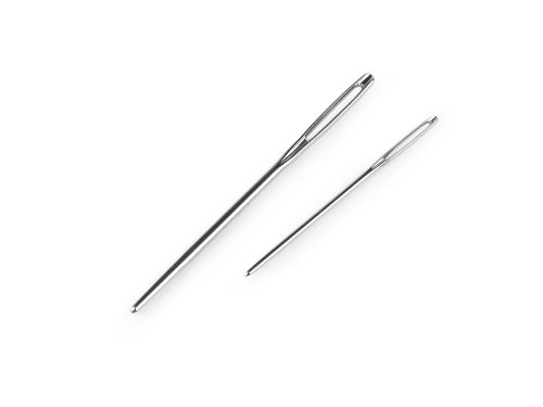 Tupé kovové jehly mají dostatečně velké ouško, abyste jím provlékli vlnu. [Jsou vhodné na sešívání pletených výrobků, vyšívání, gobelíny.] Můžete s nimi zapošívat očka u pletených či háčkovaných výrobků apod.
