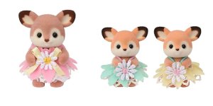 Poznej rodinu Jelínků Sylvanian Families. Tato sada obsahuje 3 rozkošné figurky dětí Jelínků a květinovou houpačku. Jelení holčičky Aster, Nova a Rose se vydaly ven, aby se pohoupaly na květinové houpačce. Nejstarší ze sourozenců Aster, má na sobě růžové šaty ve tvaru okvětních lístků, zatímco batolata Nova a Rose mají mátově zelené a žluté šaty s velkou vyšívanou květinou na přední straně. Děti rády sedí na květinové houpačce u vody a jemně se pohupují sem a tam. Postavičky lze oblékat a zdobit rozkošnými kolíčky. Hračky Sylvanian Families rozvíjejí představivost a podporují děti ve hře na role. Hra s figurkami rozvíjí kreativitu a učí emocím vytvářením a vyprávěním příběhů založených na každodenních zážitcích a pozorování světa. Vyznačují se nejvyšší kvalitou a výjimečným důrazem na detaily. Figurky Sylvanian Families jsou pokryté měkkým semišem a mají pohyblivé končetiny a hlavu. Baleno v krabičce. Rozměry balení: 13 x 14,6 x 5,5 cm. Věk: 3+