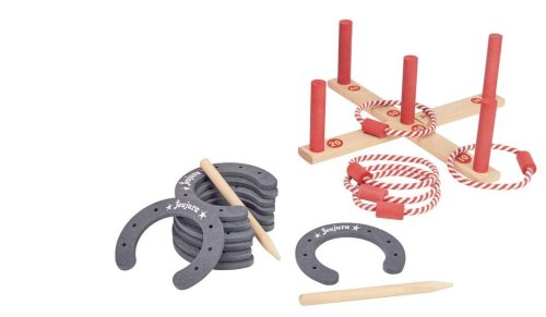 Tradiční hra s házením kroužky a podkovami na kříž, a to v praktickém balení na cesty. Vyrobeno ve Francii, z masivního bukového a borovicového dřeva francouzského původu. Součásti jsou ošetřeny výhradně za použití barev a laků na bázi vody. Hlavní vlastnosti:5 kroužků a kříž, 8 podkov a 2 kolíkysoučásti z masivního dřevapraktické balenívyrobeno ve Francii