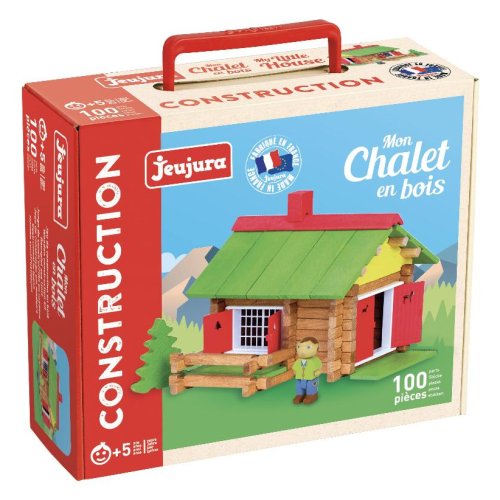 Dřevěná stavebnice inspirována alpskými chaletami potěší každého malého stavitele a stane se ozdobou dětského pokoje. Stavebnice Jeujura Constructions mají dlouhou tradici a patří mezi klasické francouzské hračky. Nabízí série tématicky věnované chatám, domkům a farmám, ale také divokému západu a středověku. Dají se mezi sebou volně kombinovat a k řadě z nich je také nabízeno příslušenství, figurky a vozidla. Jsou vyráběny ve Francii, z masivního bukového a borovicového dřeva francouzského původu. Dílky stavebnic jsou ošetřeny výhradně za použití barev a laků na bázi vody. Každá sada je balena v praktickém lepenkovém kufříku potištěném rostlinnými inkousty a součástí balení je snadno pochopitelný návod. Hlavní vlastnosti: 100 dílků z masivního dřeva a podložkapraktické balenívyrobeno ve Francii