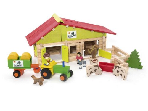 Dřevěná stavebnice, která seznámí malé stavitele se životem na farmě, stane se ozdobou dětského pokoje. Stavebnice Jeujura Constructions mají dlouhou tradici a patří mezi klasické francouzské hračky. Nabízí série tématicky věnované chatám, domkům a farmám, ale také divokému západu a středověku. Dají se mezi sebou volně kombinovat a k řadě z nich je také nabízeno příslušenství, figurky a vozidla. Jsou vyráběny ve Francii, z masivního bukového a borovicového dřeva francouzského původu. Dílky stavebnic jsou ošetřeny výhradně za použití barev a laků na bázi vody. Každá sada je balena v praktickém lepenkovém kufříku potištěném rostlinnými inkousty a součástí balení je snadno pochopitelný návod. Hlavní vlastnosti: 140 dílků z masivního dřeva a podložkapraktické balenívyrobeno ve Francii
