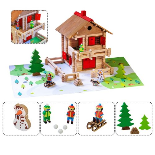 Přemýšlíte nad alpskou chatou s velkým balkonem, kde si můžete vychutnat čerstvý horský vzduch? Co takové sáňkování a koulování? S touto chaloupkou si užijete chvíle plné vloček a sněhuláků! Stavebnice Jeujura Constructions mají dlouhou tradici a patří mezi klasické francouzské hračky. Nabízí série tématicky věnované chatám, domkům a farmám, ale také divokému západu a středověku. Dají se mezi sebou volně kombinovat a k řadě z nich je také nabízeno příslušenství, figurky a vozidla. Jsou vyráběny ve Francii, z masivního bukového a borovicového dřeva francouzského původu. Dílky jsou ošetřeny výhradně za použití barev a laků na bázi vody. Každá sada je balena v praktickém lepenkovém kufříku potištěném rostlinnými inkousty a součástí balení je snadno pochopitelný návod. Hlavní vlastnosti: 215 dílků z masivního dřeva a podložkapraktické balenívyrobeno ve Francii