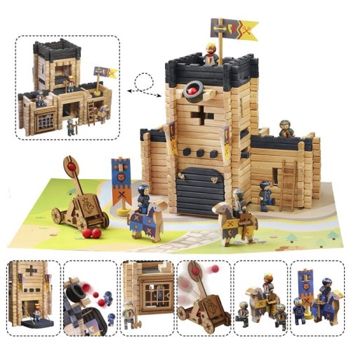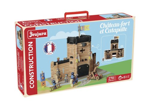 Zažijte velká dobrodružství s těmito chrabrými rytíři! Postavte si svůj vlastní hrad, nainstaluje padací most, vězení, strážní stezku, vlajky a sestavte katapult. Stačí nasednout na koně a dobývání může být zahájeno! Stavebnice Jeujura Constructions mají dlouhou tradici a patří mezi klasické francouzské hračky. Nabízí série tématicky věnované chatám, domkům a farmám, ale také divokému západu a středověku. Dají se mezi sebou volně kombinovat a k řadě z nich je také nabízeno příslušenství, figurky a vozidla. Jsou vyráběny ve Francii, z masivního bukového a borovicového dřeva francouzského původu. Dílky jsou ošetřeny výhradně za použití barev a laků na bázi vody. Každá sada je balena v praktickém lepenkovém kufříku potištěném rostlinnými inkousty a součástí balení je snadno pochopitelný návod. Hlavní vlastnosti: 270 dílků z masivního dřeva a podložkapraktické balenívyrobeno ve Francii