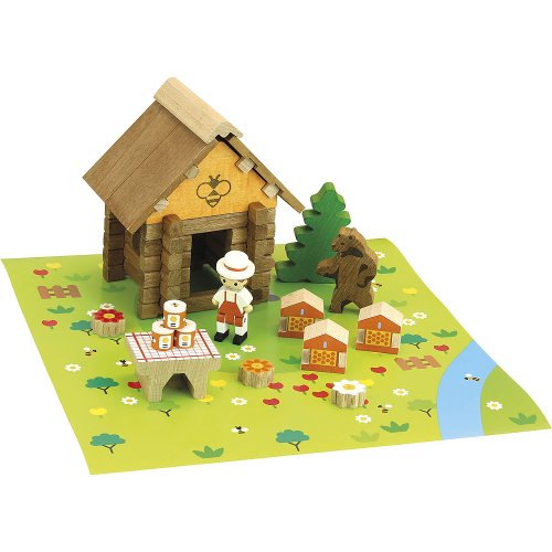 Dřevěná stavebnice včelína rozvíjí fantazii a stane se ozdobou dětského pokoje. Stavebnice Jeujura Constructions mají dlouhou tradici a patří mezi klasické francouzské hračky. Nabízí série tématicky věnované chatám, domkům a farmám, ale také divokému západu a středověku. Dají se mezi sebou volně kombinovat a k řadě z nich je také nabízeno příslušenství, figurky a vozidla. Jsou vyráběny ve Francii, z masivního bukového a borovicového dřeva francouzského původu. Dílky jsou ošetřeny výhradně za použití barev a laků na bázi vody. Každá sada je balena v praktickém lepenkovém kufříku potištěném rostlinnými inkousty a součástí balení je snadno pochopitelný návod. Hlavní vlastnosti: 50 dílků z masivního dřeva a podložkapraktické balenívyrobeno ve Francii