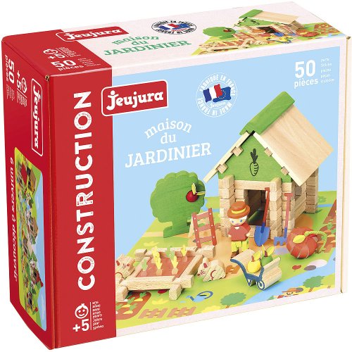 Dřevěná stavebnice zahrádky rozvíjí fantazii a stane se ozdobou dětského pokoje. Stavebnice Jeujura Constructions mají dlouhou tradici a patří mezi klasické francouzské hračky. Nabízí série tématicky věnované chatám, domkům a farmám, ale také divokému západu a středověku. Dají se mezi sebou volně kombinovat a k řadě z nich je také nabízeno příslušenství, figurky a vozidla. Jsou vyráběny ve Francii, z masivního bukového a borovicového dřeva francouzského původu. Dílky jsou ošetřeny výhradně za použití barev a laků na bázi vody. Každá sada je balena v praktickém lepenkovém kufříku potištěném rostlinnými inkousty a součástí balení je snadno pochopitelný návod. Hlavní vlastnosti: 50 dílků z masivního dřeva a podložkapraktické balenívyrobeno ve Francii