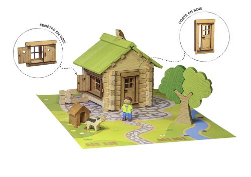 Pomozte malému tesaři postavit dům zítřka! Prkna, štíty, hřebeny, dlaždice a dokonce i dveře, okno a jeho okenice... vše máte po ruce! Stavebnice Jeujura Constructions mají dlouhou tradici a patří mezi klasické francouzské hračky. Nabízí série tématicky věnované chatám, domkům a farmám, ale také divokému západu a středověku. Dají se mezi sebou volně kombinovat a k řadě z nich je také nabízeno příslušenství, figurky a vozidla. Jsou vyráběny ve Francii, z masivního bukového a borovicového dřeva francouzského původu. Dílky jsou ošetřeny výhradně za použití barev a laků na bázi vody. Každá sada je balena v praktickém lepenkovém kufříku potištěném rostlinnými inkousty a součástí balení je snadno pochopitelný návod. Hlavní vlastnosti: 85 dílků z masivního dřeva a podložkapraktické balenívyrobeno ve Francii