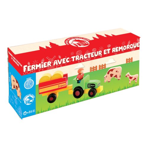 Postavička farmáře s traktorem, přívěsem a zvířátky. Figurky ke stavebnicím Jeujura Constructions mohou sloužit i samostatně. Figurky lidí mají pohyblivé končetiny. Jsou nabízeny v tématicky zaměřených sériích, ale dají se různě kombinovat. Stejně jako stavebnice jsou vyráběny z masivního dřeva a jsou ošetřeny výhradně za použití barev a laků na bázi vody. Hlavní vlastnosti: pohybliva figurka farmáře, traktor, přívěs a 2 zvířátka
