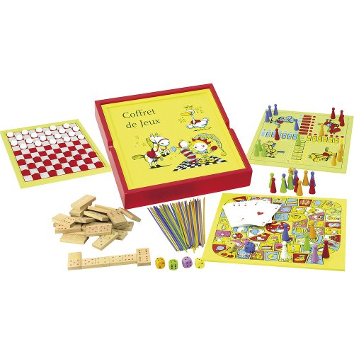 Soubor stolních, deskových her a karet v atraktivním a praktickém provedení. Obsahuje dámu, mlýn, husu, hady a žebříky i člověče nezlob se. Součástí je také mikádo, domino a balíček bridžových karet. Baleno v robustním boxu z masivního dřeva. Hlavní vlastnosti:stolní, deskové i karetní hryatraktivně ilustrovánopraktické balení