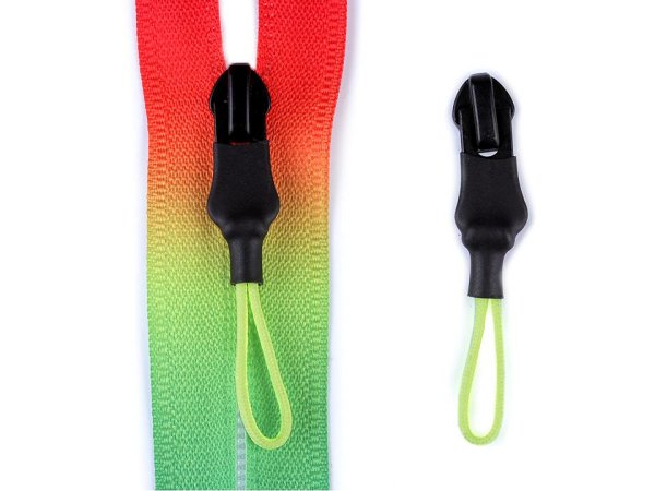 Kovový jezdec je určený ke spirálovým zipům v metráži s šířkou 5 mm. Díky delšímu poutku se s ním dobře manipuluje.