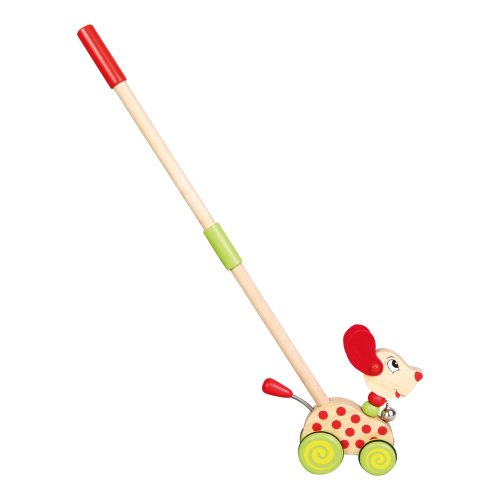Dřevěný pejsek na tyči je vybaven rolničkou, která při jízdě vydává jemný cinkavý zvuk. Hračka, kterou může dítě tlačit před sebou, podporuje rozvoj motorických schopností a koordinaci pohybů. Díky barevnému provedení se děti zároveň učí rozlišovat barvy. Jezdík má praktická pogumovaná kolečka, která zajišťují tichý, plynulý chod doma i venku. Krásný a smysluplný dárek pro Vaše dítě. Hlavní vlastnosti: podporuje dítě při prvních krůčcíchzábavný a roztomilý společníkrozvíjí motorické schopnosti a koordinaci