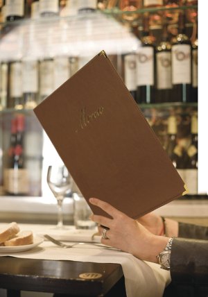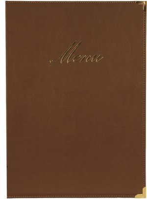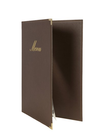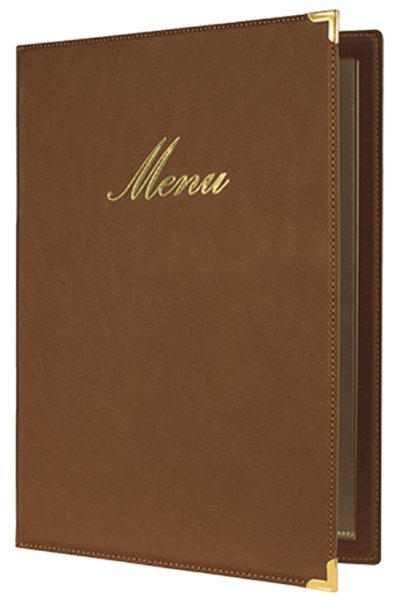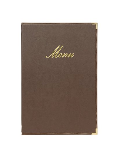 imitace kůže mají zlatý nápis menu
