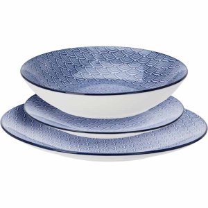 Elegantní jídelní sada 18 dílů z kvalitního porcelánu s jemným japonským motivem v modré barvě.