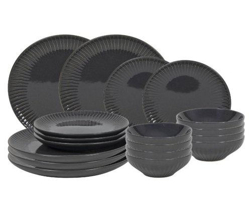 Tato elegantní jídelní souprava obsahuje 18 kusů nádobí v lesklé šedé barvě, které dodají vašemu stolování moderní a sofistikovaný vzhled. Sada je ideální pro každodenní použití i pro slavnostní příležitosti.