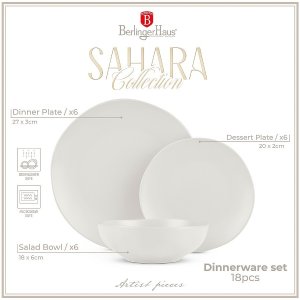 <SPAN lang=CS><P dir=ltr align=left><STRONG>Představujeme sadu Berlinger Haus BH10022 Sahara Dinnerware Set. Decentní elegance v matném krému</STRONG></P><P dir=ltr align=left><STRONG>Vynikající řemeslné zpracování kameniny<BR></STRONG>Zvyšte svůj jídelní zážitek se sadou nádobí Berlinger Haus BH10022 Sahara, pečlivě vyrobené z kameniny prvotřídní kvality. Tato kolekce představuje sofistikovaný matný krémový povrch, který nabízí jemnou, ale nápadnou estetiku, která doplní jakýkoli domácí dekor. Sada obsahuje šest jídelních talířů, šest salátových misek a šest dezertních talířů, přičemž každý kus je dokonale připraven k vylepšení vašich stolovacích příležitostí.</P><P dir=ltr align=left>Jemná matná krémová barva této sady nádobí přináší teplý, příjemný tón na váš stůl, takže je ideální pro jakékoli jídlo – od neformálních snídaní po elegantní večeře. Tento všestranný odstín slouží jako krásné pozadí pro vaše kulinářské výtvory a umožňuje zářivým barvám vašeho jídla zářit.</P><P dir=ltr align=left><STRONG>Všestranná a komplexní sada</STRONG></P><UL><P dir=ltr align=left><LI>Talíře: průměr 27 cm, ideální pro elegantní podávání hlavních jídel. <P></P><P dir=ltr align=left></P><LI>Salátové mísy: 18 cm široké a 6 cm hluboké, ideální pro čerstvé saláty nebo teplé polévky. <P></P><P dir=ltr align=left></P><LI>Dezertní talíře: 20 cm, zlepšující prezentaci vašich sladkých pochoutek nebo malých slaných kousků. <P></P></LI></UL><P dir=ltr align=left><STRONG>Odolnost a praktičnost</STRONG><BR>Robustní kameninová konstrukce je vyrobena tak, aby vydržela, zajišťuje trvanlivost a odolnost vůči každodennímu opotřebení, takže je vhodná jak pro zvláštní příležitosti, tak pro každodenní použití. Navíc je celá sada vhodná do myčky a mikrovlnné trouby a nabízí snadnou přípravu a čištění jídla – praktická volba pro dnešní uspěchaný životní styl.</P><P dir=ltr align=left></P><P dir=ltr align=left>Proč si vybrat sadu nádobí Berlinger Haus BH10022 Sahara?<BR>Dodává nádech rafinované elegance svým stylovým matným krémovým designem. Poskytuje kompletní sadu talířů a misek pro jednotný vzhled napříč všemi chody. Zajišťuje snadnou údržbu díky kompatibilitě s myčkou a mikrovlnnou troubou.</P><P dir=ltr align=left>Proměňte svůj jídelní stůl se sadou nádobí Berlinger Haus BH10022 Sahara. Tato sada je ideální pro ty, kteří ocení minimalistický design a praktičnost, a slibuje, že bude cenným doplňkem vaší kuchyně.</P></SPAN><STRONG>Obsahuje:</STRONG> <BR>- 6 ks plytkých talířů: 273 cm. <BR>- 6 ks polévkých / salátových misek: 186 cm <BR>- 6 ks dezertních talířů: 20*2 cm <BR>- Barva: matná krémová sahara <BR>- Materiál: kamenina prémiové kvality <BR>- Lze mýt v myčce nádobí <BR>- Vhodné do mikrovlnné trouby