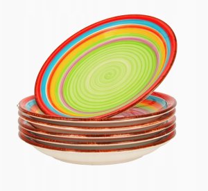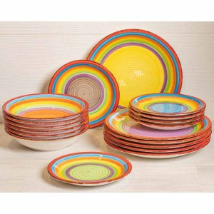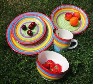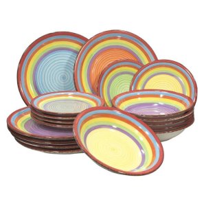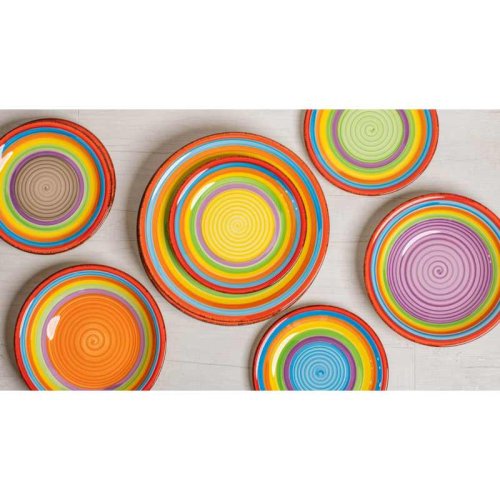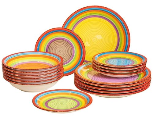 Vneste léto do svého domova s touto 18dílnou sadou nádobí model ´Ibiza´.Tato sada je vhodná pro 6 osob.Sada se skládá z:6x jídelní talíř 27 cm6x hluboký talíř 20,5 cm6x snídaňový talíř 19,5 cm