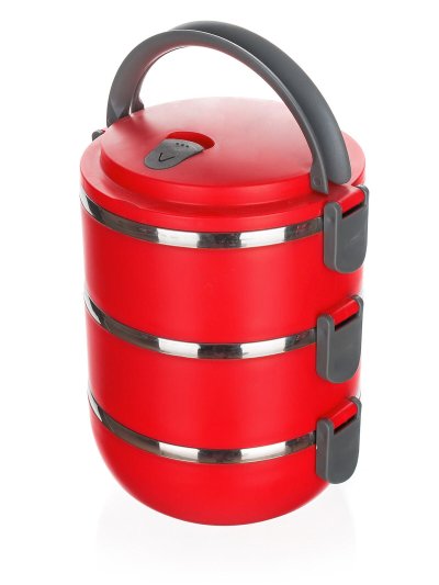 průměr: 14,5 cm objem: 3 x 0,55 l celkový objem: 1,65 l materiál: uvnitř nerez 201 (síla nerezu 0,30 mm), plast - polypropylen barva: červená