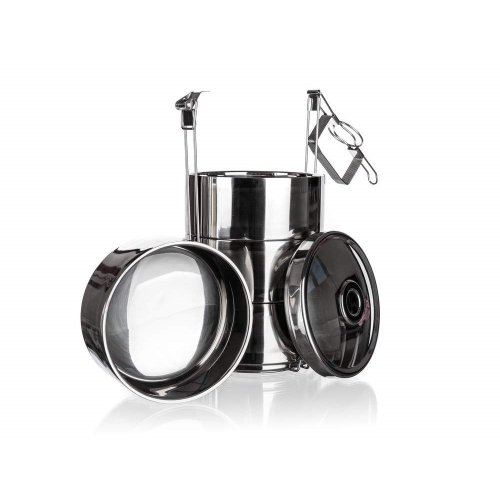 Už vás omrzely neustále zmačkané jednorázové polystyrenové misky na jídlo? Pořiďte si u nás kvalitní nerezový jídlonosič Akcent značky Banquet, se kterým jídlo jednoduše a bezpečně přenesete. Touto 4dílnou sadou misek o objemu 1,1 l můžete bez obav vybavit manžela do práce. Díky průměru 16 cm a výšce 7,5 cm jsou totiž vhodné pro větší porce jídla.