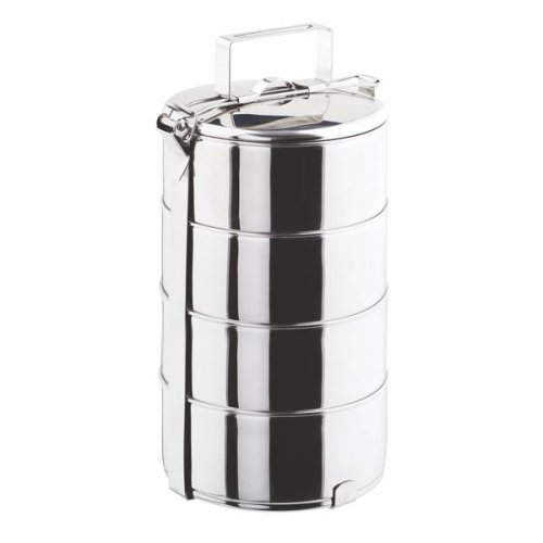 Jídlonosič je vyrobený z nerezového kovového materiálu. Má čtyři nerezové misky s průměrem 16 cm vysoké 6,7 cm. Jídlonosič spojíte pomocí kovové konstrukce. Lze mýt v myčce nádobí. Objem 4x1,25 l.