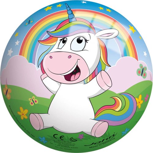 Obrázkový míč s barevným potiskem veselých jednorožců. Míč je vyroben z voděodolného materiálu a je vhodný nejen na kopání či házení na zahradě nebo na hřišti, ale lze jej použít také v bazénu. Průměr 230 mm. Balón je možno v případě potřeby dofouknout pumpičkou na kolo nebo pomocí kompresoru. Vyrobeno v EU.