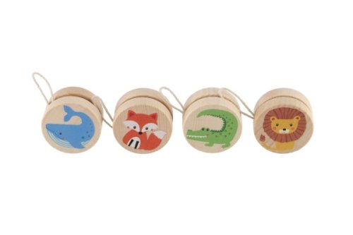 Jojo je hračka s dlouholetou tradicí. Zná ji snad každý. Provázek si přivážete na prst a jemným pohybem ruky udržujete jojo v pohybu po provázku nahoru a dolu. Různobarevná joja jsou s krásnými veselými motivy. Hračka je vyrobena ze dřeva. Rozměry výrobku 5,5 x 5,5 x 3 cm. Vhodné pro děti od 3 let.