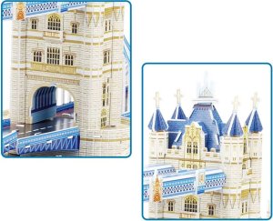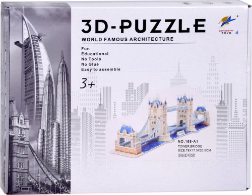 3D puzzle Tower Bridge v Londýně, skládající se ze 120 dílků, je vynikající vzdělávací hračka, která umožňuje dětem i dospělým postavit si vlastní model jedné z nejslavnějších staveb na světě. Tato skládačka, která nevyžaduje lepidlo ani stříhání, nabízí zábavu, která rozvíjí dovednosti a zároveň baví. Vlastnosti puzzle: