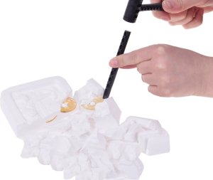 Inspirující hračka pro všechny děti, které sní o povolání archeologa nebo hledače pokladů. Úkolem je pomocí přiloženého nářadí objevit zlaté mince ukryté v sádrovém odlitku. Hra je náročnější, ale odměnou je radost z nalezeného „pokladu“. Skvělá aktivita pro rozvoj trpělivosti, jemné motoriky a zájmu o objevování. Vhodné i jako originální dárek pro malé dobrodruhy. Obsah sady