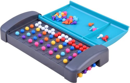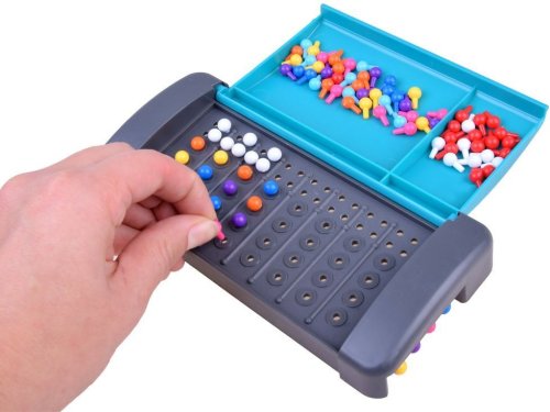 Rozměry: 16,5 x 8 cm x 2,5 cm Postup: Jeden z hráčů se stane šifrujícím hráčem a v tajnosti před protihráčem si vybere čtyři barevné kolíčky a umístí jejich libovolnou kombinaci do kapsy šifry, čímž vytvoří tajný kód. Soupeř má 8 pokusů, aby šifru uhodl. Při každém pokusu umístí kolíčky na hrací desku v pořadí, které se mu zdá být nejbližší tajnému kódu. Šifrující hráč ho pomocí kolíčků dvou barev (bílé a červené) informuje o správnosti navrženého uspořádání. Tímto způsobem má hádající k dispozici stále více informací, které mu umožňují vyřešit hádanku. Po uhodnutí šifry si hráči vymění role. Vítězem se stává ten, kdo získal více tahů.