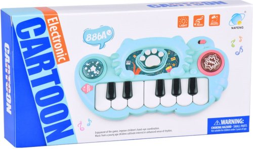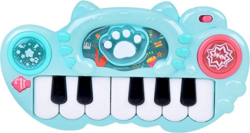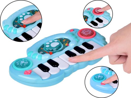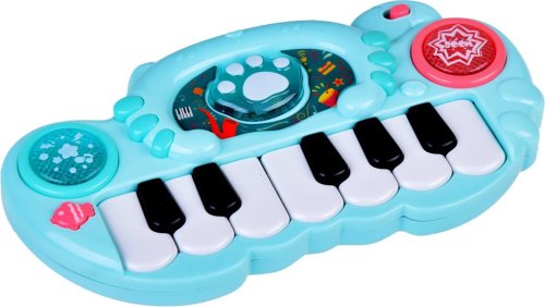 Osvětlená tlačítka vydávají zvuky bubnů a činelů. Růžová tlapka přehrává krátké veselé melodie se současným podsvícením kulatých tlačítek. Černé a bílé klávesy hrají základní tóny stupnice. Každé stisknutí klávesy doprovází světelný efekt umístěný na panelu hračky. Hračka je vybavena prvky, které rozvíjejí manuální zručnost dítěte, díky přesnému stisknutí kláves. Rozměry varhánek: 22 x 12 x 3,5 cm Napájení: 2 x 1,5 V AA baterie (nejsou součástí balení)