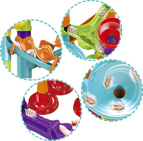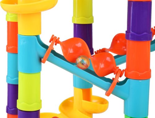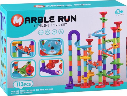 Se zábavnou hračkou Kuličková dráha 113 dílků si mohou děti sestavit nejrůznější dráhy, bludiště a cestičky. Jak složitou dráhu postavíš zrovna Ty? Ale pozor, je důležité, aby kulička projela celé bludiště. Muší překonat všechny nástrahy. Stavěj na výšku i do šířky. Použij všechny dílky tak, aby se kulička dostala do svého cíle. Fantazii se meze nekladou. Stavebnice je variabilní, bezpečná a nabízí holkám i klukům nespočet nejrůznějších kombinací. Skládat lze do šířky i na výšku. Je tedy možné vymyslet efektní více patrové sestavy.
