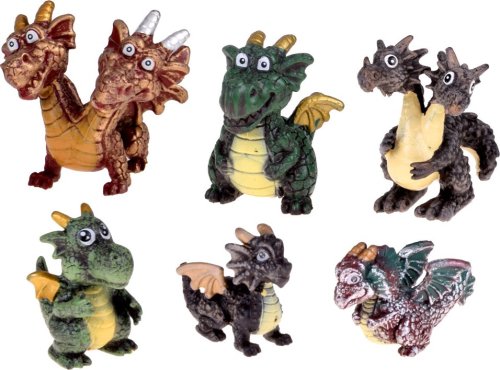 Sada 6 detailně zpracovaných figurek pohádkových draků. Barevné, originální modely v pohádkovém stylu podporující fantazii. Vyrobeno z odolného plastu. Velikost figurek cca 3-6 cm.