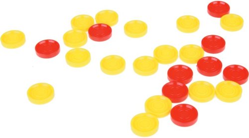 základnu pro hru, herní desku pro hru Čtyři v řadě, 4 x kolečko, 4 x křížek, 20 x žluté žetony, 20 x červené žetony.