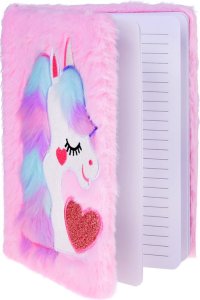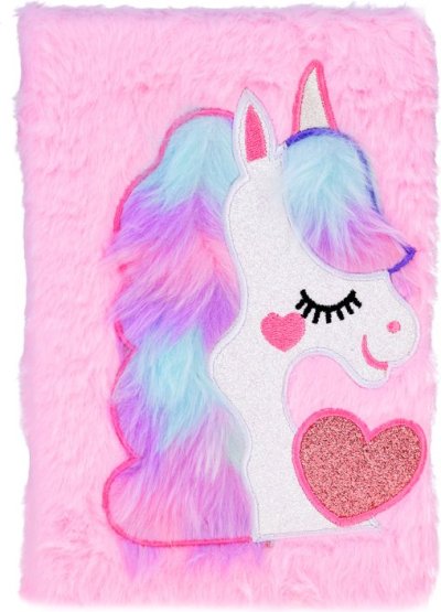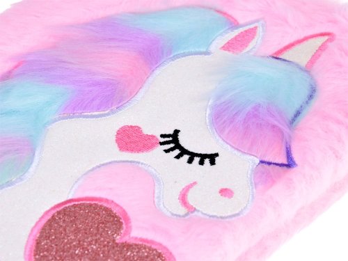 Rozměry : 22 x 16 x 2 cm Počet listů : 80 Růžovo-pastelové barvy s krásným, třpytivým jednorožcem Měkký, kožíškový povrch