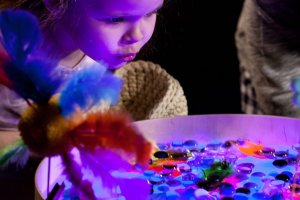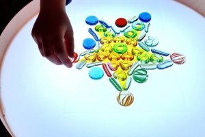 Kouzelný světelný stůl je praktický a lehký stůl určený pro hry, umění a terapii. Stůl má vyšší hranu okraje, která zabraňuje rozsypání písku, kamínkům a dalším drobným materiálům, které se používají při vytváření různorodých scén a hrách. Osvětlení je zajištěno LED diodami, vytváří 16 různých barev, které lze automaticky nastavit ve 4 různých frekvenčních programech. Automatické změny barev podněcují k originálnímím hrám a kreativitě. Na stole můžete kreslit prsty, štětcemi i plastovými nástroji. Stůl nabízí možnost tvořit různými technikami, které rozvíjí děti nejen v kreativitě, ale také jim pomůůže rozlišovat barvy, tvary, materiály, různé vzory a nabízí možnost vytvořit nekonečné množství jedinečných uměleckých děl. Stůl se může posloužit také napřklad jako divadelní scéna. Díky rozměrům a kulatému tvaru si může u stolu hrát nebo tvořit více dětí najednou. Stůl může posloužit jako osvětlení do pokojíčku i terapeutických místností. LED diody jsou umístěny pod pevným plexisklem (polykarbonát) s 45% propustností světla. Dálkové ovládání ovládá změnu barev, nastavení frekvenčních programů, intenzitu a jas světla. Není vhodné pro epileptiky. Hlavní vlastnosti: osvětlení LED diodami, 16 různých barevpodněcuje děti k originálním hrám a kreativitěkreslení prsty, štětcem nebo plastovými nástrojimožno použit jako osvětlení do terapeutických místnostímůže tvořit více dětí najednoudálkové ovládání