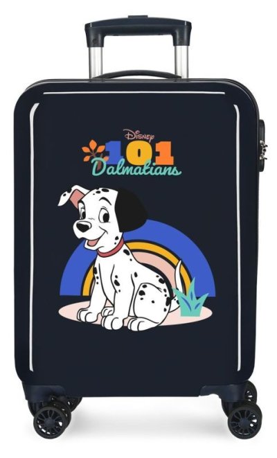 JOUMMABAGS Cestovní kufr ABS 101 dalmatinů 55 cm Materiál: ABS plast Rozměr: 55x38x20 cm, objem 34 l Cestovní kufr ABS je luxusní plastový kufr. Cestovní kufr 55 cm je vyroben z pevného ABS plastu a má 4 otočná kolečka, integrovaný zámek s číselným kódem. Rozměr kufru umožňuje použití též jako kabinové zavazadlo vhodné i pro nízkonákladové lety.
