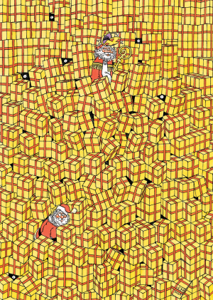 Skládání puzzle od Jana van Haasterena je velmi pestré a zábavné, prozkoumáte tak každý vtipný detail a zabavíte se na dlouhé chvíle. V souladu se svými tradicemi komponuje Jan van Haasteren do svých předloh svoji známou značku, kterou jako první jeho fanoušci hledají - žraločí ploutev a ruce, které vypadají, jako by nikomu nepatřily! A také mnoho dalších detailů, které naleznete na téměř všech jeho ilustracích - zubní protézu, Mikuláše a Haasterenův vlastní portrét. Velmi detailní, barevné a především vtipné ilustrace od autora jménem Jan Van Haasteren výhradně pro JUMBO. Jeho kresby mají výrazně rozeznatelný styl - vtipné obrázky, veselé situace a daleko více lidí, než byste očekávali! Puzzle z produkce Jan van Haasteren jsou po celém světě populární a doposud jich vytvořil více než 80. Rozměr složeného puzzle cca 35 x 49 cm