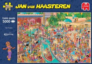 Skládání puzzle od Jana van Haasterena je velmi pestré a zábavné, prozkoumáte tak každý vtipný detail a zabavíte se na dlouhé chvíle. V souladu se svými tradicemi komponuje Jan van Haasteren do svých předloh svoji známou značku, kterou jako první jeho fanoušci hledají - žraločí ploutev a ruce, které vypadají, jako by nikomu nepatřily! A také mnoho dalších detailů, které naleznete na téměř všech jeho ilustracích - zubní protézu, Mikuláše a Haasterenův vlastní portrét. Velmi detailní, barevné a především vtipné ilustrace od autora jménem Jan Van Haasteren výhradně pro JUMBO. Jeho kresby mají výrazně rozeznatelný styl - vtipné obrázky, veselé situace a daleko více lidí, než byste očekávali! Puzzle z produkce Jan van Haasteren jsou po celém světě populární a doposud jich vytvořil více než 80. Ilustrační video Rozměr složeného puzzle cca 156 x 107 cm