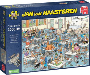 Skládání puzzle od Jana van Haasterena je velmi pestré a zábavné, prozkoumáte tak každý vtipný detail a zabavíte se na dlouhé chvíle. V souladu se svými tradicemi komponuje Jan van Haasteren do svých předloh svoji známou značku, kterou jako první jeho fanoušci hledají - žraločí ploutev a ruce, které vypadají, jako by nikomu nepatřily! A také mnoho dalších detailů, které naleznete na téměř všech jeho ilustracích - zubní protézu, Mikuláše a Haasterenův vlastní portrét. Velmi detailní, barevné a především vtipné ilustrace od autora jménem Jan Van Haasteren výhradně pro JUMBO. Jeho kresby mají výrazně rozeznatelný styl - vtipné obrázky, veselé situace a daleko více lidí, než byste očekávali! Puzzle z produkce Jan van Haasteren jsou po celém světě populární a doposud jich vytvořil více než 80. Ilustrační video Rozměr složeného puzzle cca 98 x 68 cm