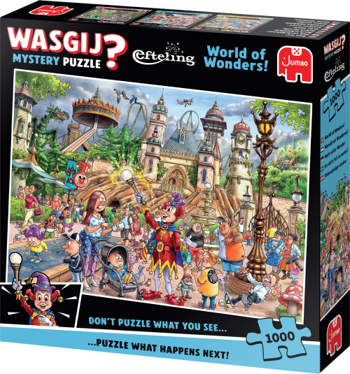 Puzzle WASGIJ je hádankou a výzvou zároveň. S WASGIJ je skládání puzzle ještě zábavnější ! WASGIJ je skutečnou výzvou a vynikající zábavou dokonce i pro zkušené skládače puzzle. Puzzle WASGIJ? Original nesleduje tradiční principy a způsob skládání dle předlohy. Výsledný obrázek je totiž jiný než ten vyobrazený na krabici. Abyste věděli, co vlastně máte poskládát, musíte nejprve odhalit pomocí vodítek a pokynů z obalu postavu z předlohy na krabici, z jejíhož pohledu budete puzzle skládat. Pak využijte své představivosti a směle se pusťte do zábavného skládání. Puzzle Wasgij?- ilustrační video Rozměr složeného puzzle cca 68 x 49 cm