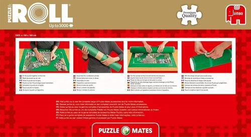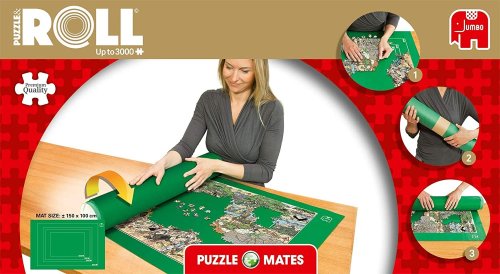 Praktický doplněk ke skládání puzzle - to je rolovací kobereček JUMBO. Podložka je vhodná pro puzzle do velikosti 140 x 95 cm (odpovídá 3.000 dílků většiny výrobců). Kobereček na puzzle je ideální pro úsporu místa a bezpečné uchování nedokončeného i hotového obrázku. Podložka zajistí bezpečné uchování nebo transport vašeho puzzle. Na podložce jsou vyznačeny rozměry puzzle JUMBO, můžete tedy již na počátku skládání přesně založit okraje. Zelenou podložku pod puzzle jednoduše srolujete i s rozeskládaným obrázkem, máte rychle uklizeno a navíc nemusíte mít obavu, že se Vám dílky někde poztrácí. Kobereček pod puzzle je ideální pro úsporu místa i na cestování. Skládá se ze tří pevných tubusů, které spojíte k sobě, podložky a tří gumových pásků na pevné uchycení. Velikost koberečku je 150 x 100 cm. UPOZORNĚNÍ: V případě zakoupení koberečku pro skládání puzzle jiných značek doporučujeme ověřit rozměry složeného puzzle. Údržba filcové podložky: Podložku lze žehlit na nejnižší teplotu nejlépe přes tenkou tkaninu (utěrku). Ruční praní ve studené vodě, neždímat a nesušit v sušičce.